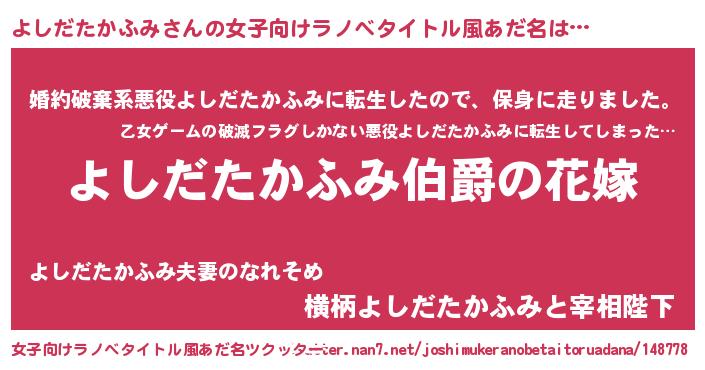 | ファンタジー風あだ名 | 『エターナルヨシダタカフミー』 |