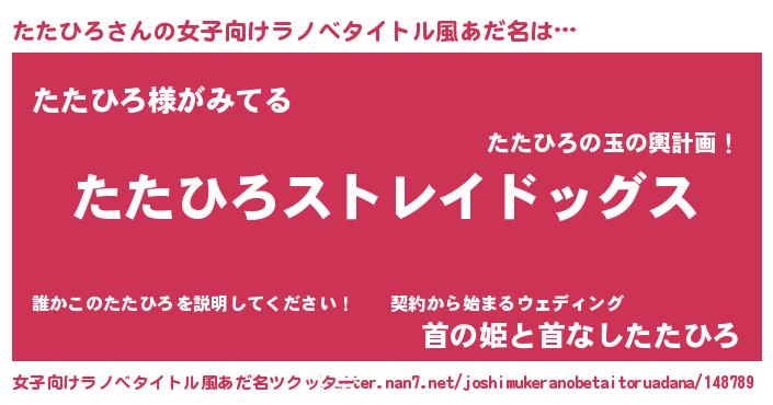 | 男性向けラノベタイトル風あだ名 | 『Re:たたひろから始める異世界生活』 |