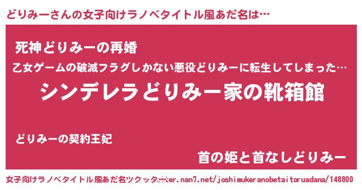 | 男性向けラノベタイトル風あだ名 | 『冴えないどりみーの育てかた』 |