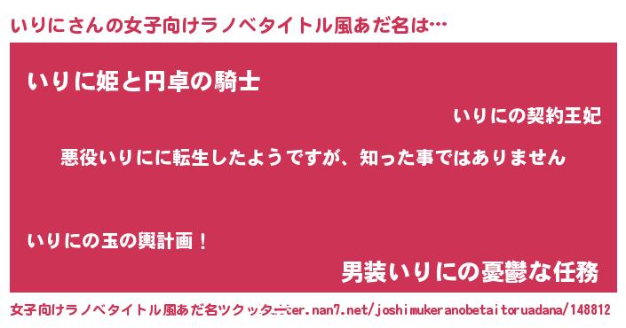 | 男性向けラノベタイトル風あだ名 | 『この素晴らしい世界にいりにを!』 |