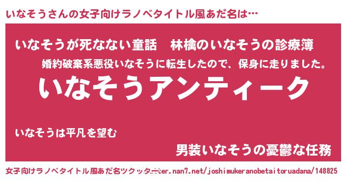 | 恥ずかしいあだ名 | 『イナソウデラックス』『イナリンリン』 |