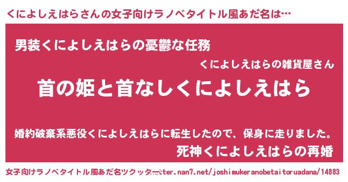 | 男性向けラノベタイトル風あだ名 | 『はたらくくによしえはらさま!』 |