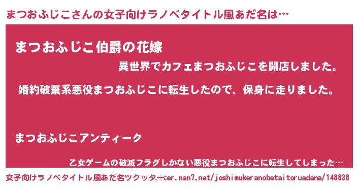 | 男性向けラノベタイトル風あだ名 | 『転生したらまつおふじこだった件』 |