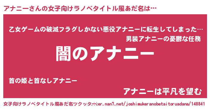 | 胡散臭い通販商品みたいなあだ名 | 『テレビで話題の高麗人参…その名も「アナニー」』 |