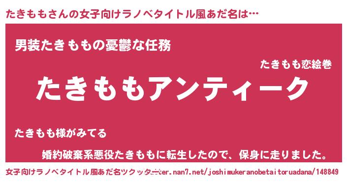 | 意味不明あだ名 | 『自称たきもも』『なめこ科たきもも属』 |