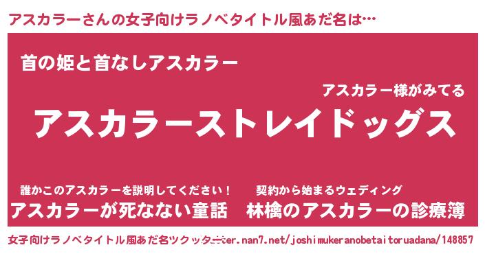 | ヒーロー風カッコイイあだ名 | 『究極戦士アスカラー』『仮面アスダー』 |