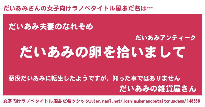 | 胡散臭い通販商品みたいなあだ名 | 『伝統あるサプリメント…その名も「だいあみ」』 |