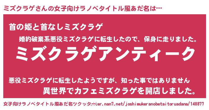 | 男性向けラノベタイトル風あだ名 | 『魔法科高校のミズクラゲ』 |