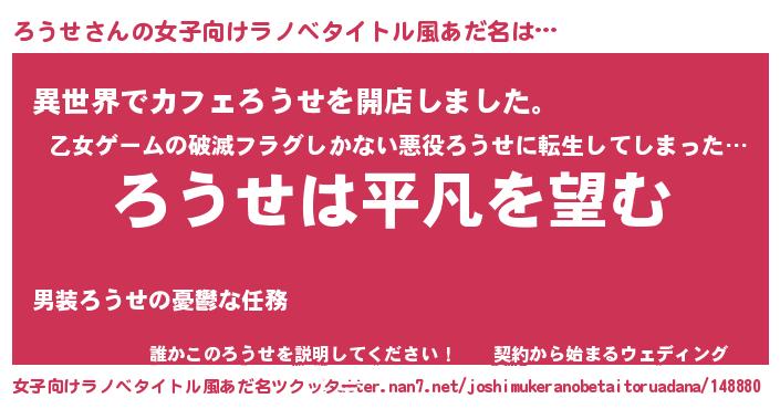| ヘコむあだ名 | 『ろうを』『ろうせ(笑)』『豆乳』 |