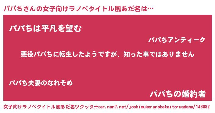 | 男性向けラノベタイトル風あだ名 | 『この素晴らしい世界にパパちを!』 |
