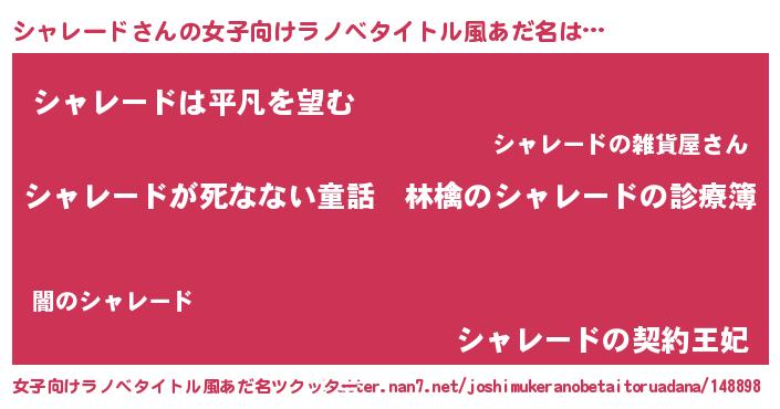 | 男性向けラノベタイトル風あだ名 | 『魔弾の王とシャレード』 |