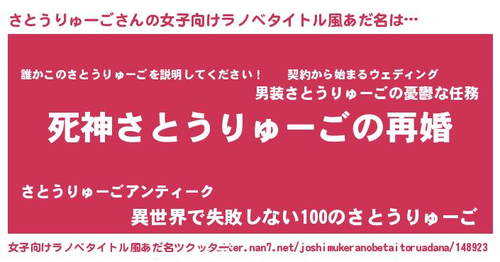| 男性向けラノベタイトル風あだ名 | 『ノーゲーム・ノーサトウリューゴ』 |