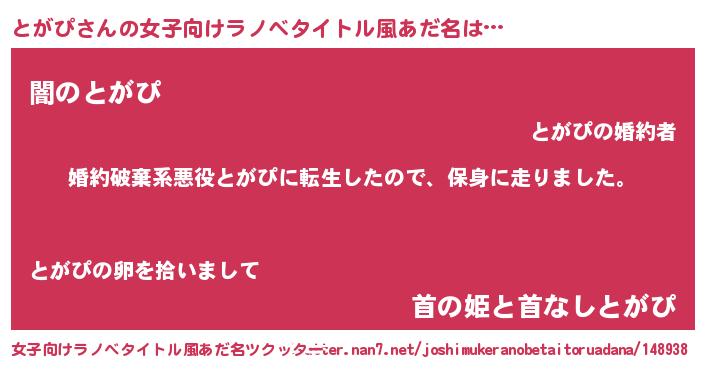 | 男性向けラノベタイトル風あだ名 | 『転生したらとがぴだった件』 |