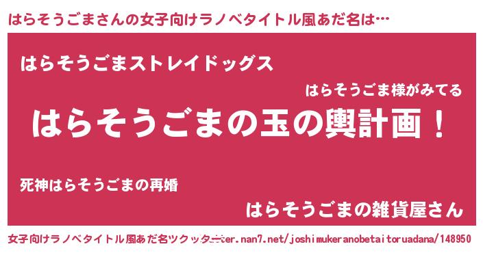 | 男性向けラノベタイトル風あだ名 | 『転生したらはらそうごまだった件』 |