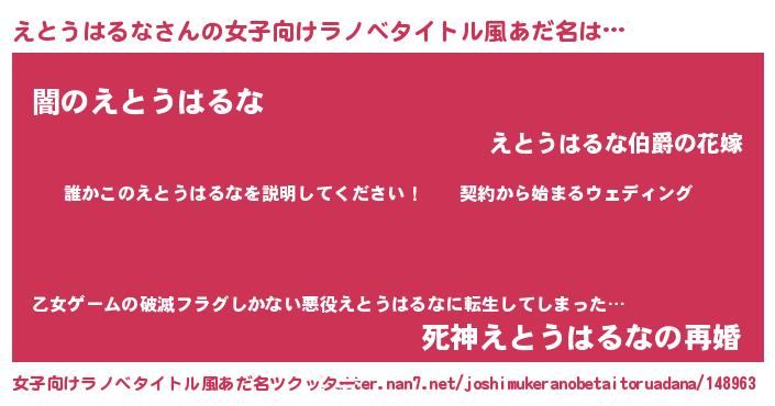 | 男性向けラノベタイトル風あだ名 | 『エトウハルナアートオンライン』 |