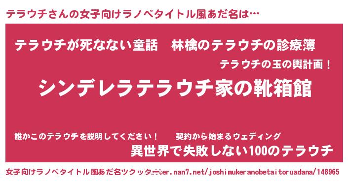| 意味不明あだ名 | 『住所不定無職テラウチ(84歳)』 |