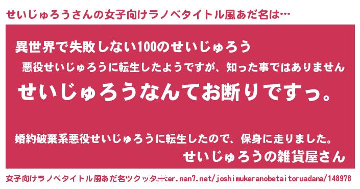 | 男性向けラノベタイトル風あだ名 | 『魔法科高校のせいじゅろう』 |