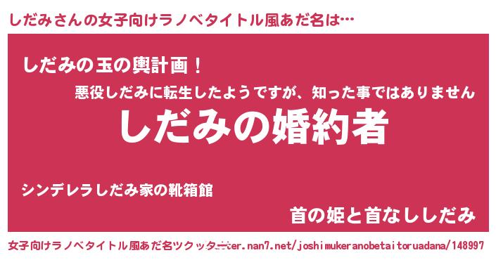 | 胡散臭い通販商品みたいなあだ名 | 『運命の人と巡り会える高級そうな絵画…その名も「しだみ」』 |