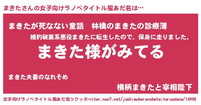 | 胡散臭い通販商品みたいなあだ名 | 『全米が絶賛したサプリメント…その名も「まきた」』 |