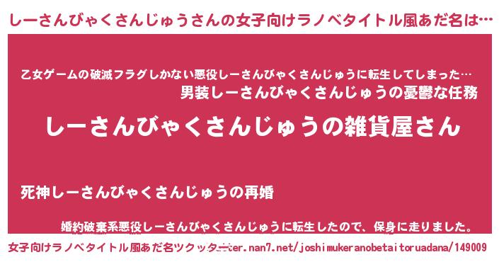 | ファンタジー風あだ名 | 『エターナルシーサンビャクサンジュウー』 |
