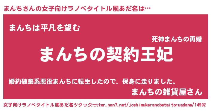 | 男性向けラノベタイトル風あだ名 | 『誰もが恐れるあのまんちが、ぼくの専属メイドになるようです。』 |