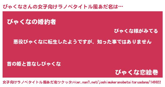 | 意味不明あだ名 | 『住所不定無職びゃくな(14歳)』 |