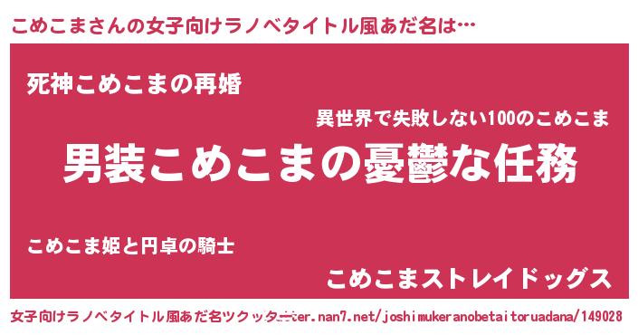 | ヘコむあだ名 | 『こめこま(笑)』『こめっふぃ~』 |