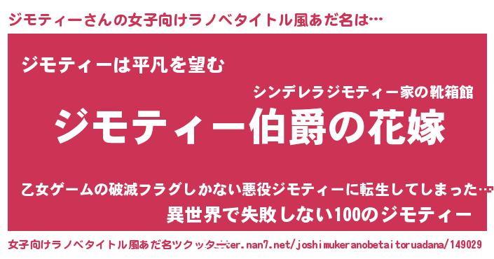 | 男性向けラノベタイトル風あだ名 | 『やはりジモティーの青春ラブコメはまちがっている 』 |