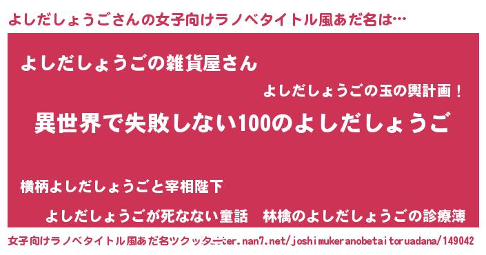 | 意味不明あだ名 | 『永久保存よしだしょうご』 |