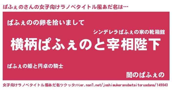 | 意味不明あだ名 | 『とにかく怪しいぱふぇの』 |