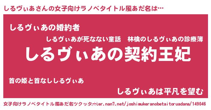 | 男性向けラノベタイトル風あだ名 | 『誰もが恐れるあのしるヴぃあが、ぼくの専属メイドになるようです。』 |