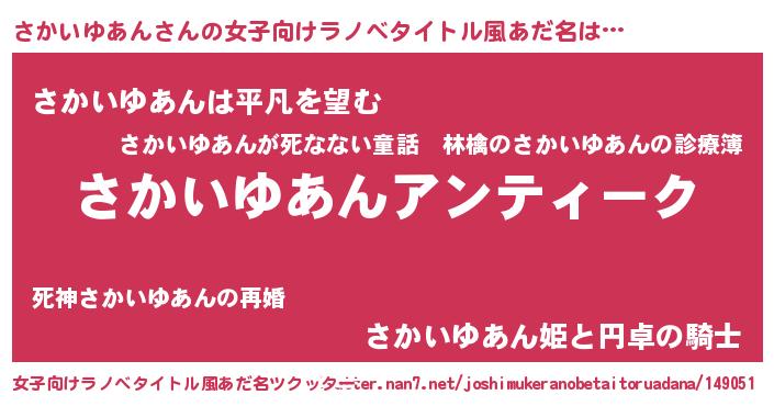 | 意味不明あだ名 | 『自称さかいゆあん』 |