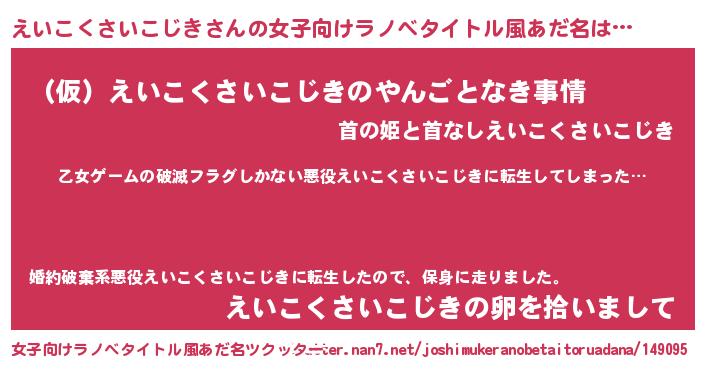 | 男性向けラノベタイトル風あだ名 | 『この素晴らしい世界にえいこくさいこじきを!』 |