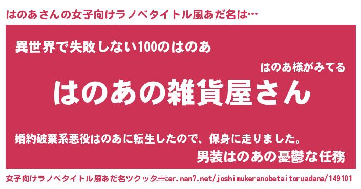 | 男性向けラノベタイトル風あだ名 | 『やはりはのあの青春ラブコメはまちがっている 』 |