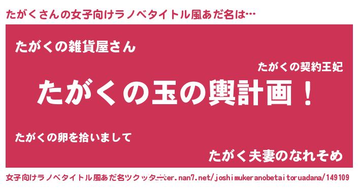 | 男性向けラノベタイトル風あだ名 | 『転生したらたがくだった件』 |
