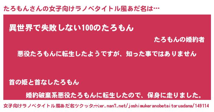 | 意味不明あだ名 | 『住所不定無職たろもん(86歳)』 |