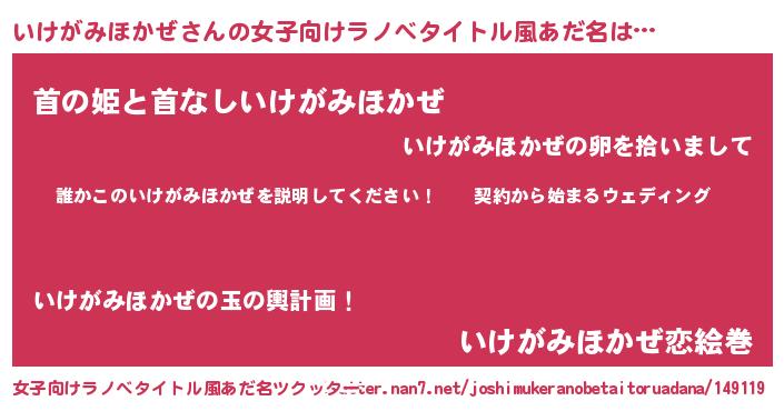 | 男性向けラノベタイトル風あだ名 | 『イケガミホカゼアートオンライン』 |