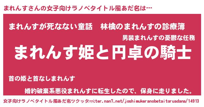 | 男性向けラノベタイトル風あだ名 | 『まれんすの憂鬱』『魔弾の王とまれんす』 |