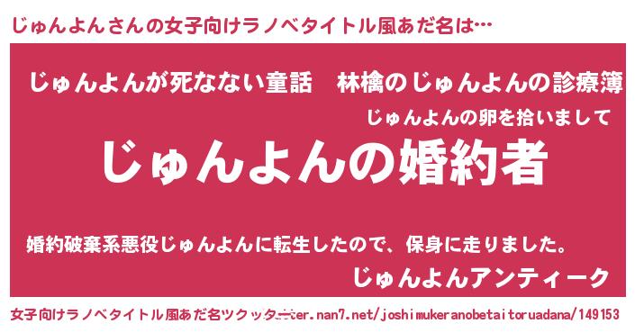 | 胡散臭い通販商品みたいなあだ名 | 『運命の人と巡り会える高級そうな壺…その名も「じゅんよん」』 |
