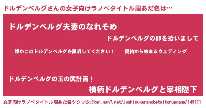 | 男性向けラノベタイトル風あだ名 | 『ドルデンベルグアートオンライン』 |