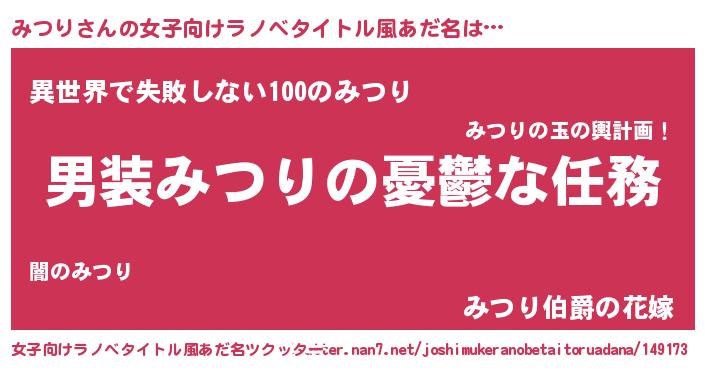 | 胡散臭い通販商品みたいなあだ名 | 『来世でも幸せになれる水素水…その名も「みつり」』 |