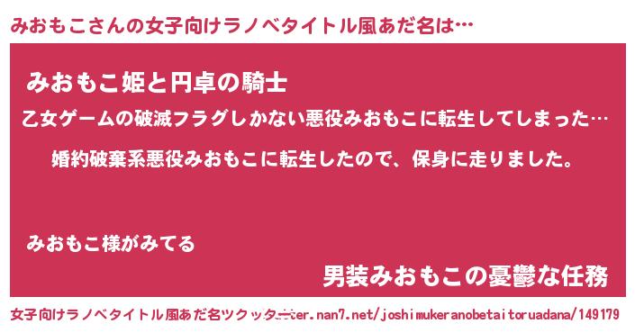 | 胡散臭い通販商品みたいなあだ名 | 『必ず成功するブレスレット…その名も「みおもこ」』 |