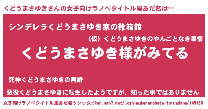 | 男性向けラノベタイトル風あだ名 | 『くどうまさゆきの嫁は女の子じゃないと思った?』 |