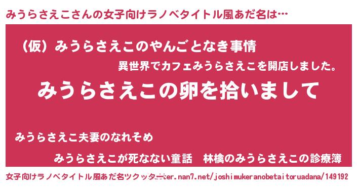 | 男性向けラノベタイトル風あだ名 | 『ダンジョンにみうらさえこを求めるのは間違っているだろうか』 |
