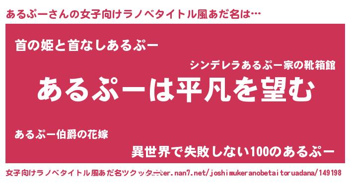 | 意味不明あだ名 | 『とにかく怪しいあるぷー』 |
