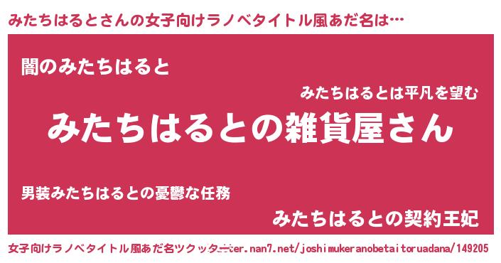 | 男性向けラノベタイトル風あだ名 | 『やはりみたちはるとの青春ラブコメはまちがっている 』 |