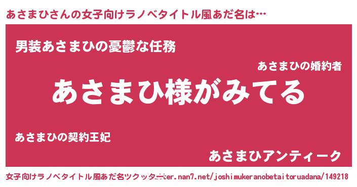 | 男性向けラノベタイトル風あだ名 | 『あさまひの嫁は女の子じゃないと思った?』 |