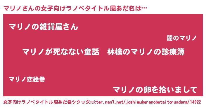 | ヘコむあだ名 | 『牛乳』『マリっぺ』『マリノ(笑)』 |