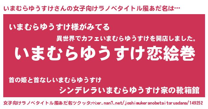 | 肩書あだ名 | 『いまむらゆうすけ助手』 |