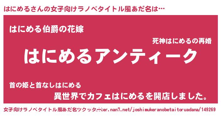 | 男性向けラノベタイトル風あだ名 | 『魔法科高校のはにめる』 |